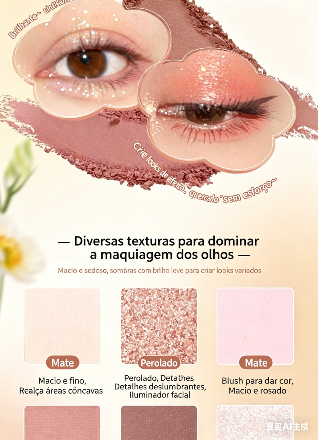 Paleta de 9 sombras Helen Liren, matte, brilho e contorno multifuncional.