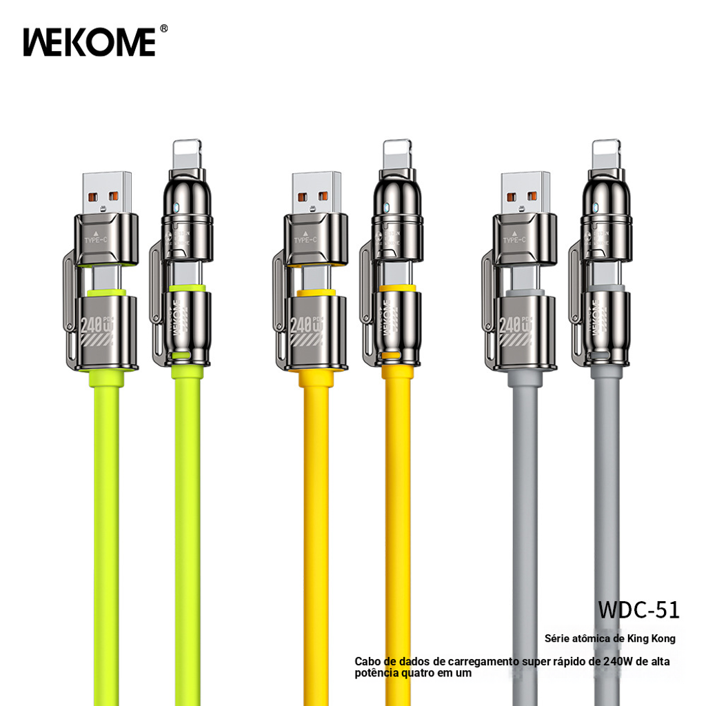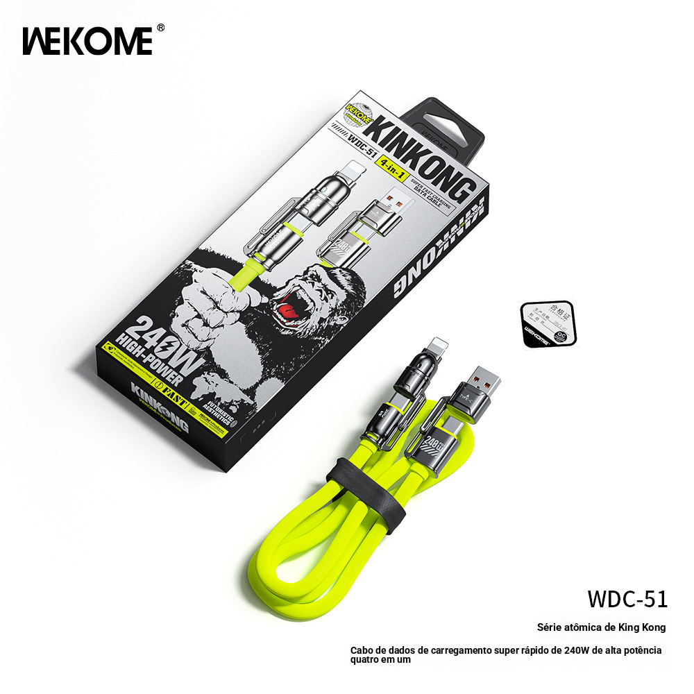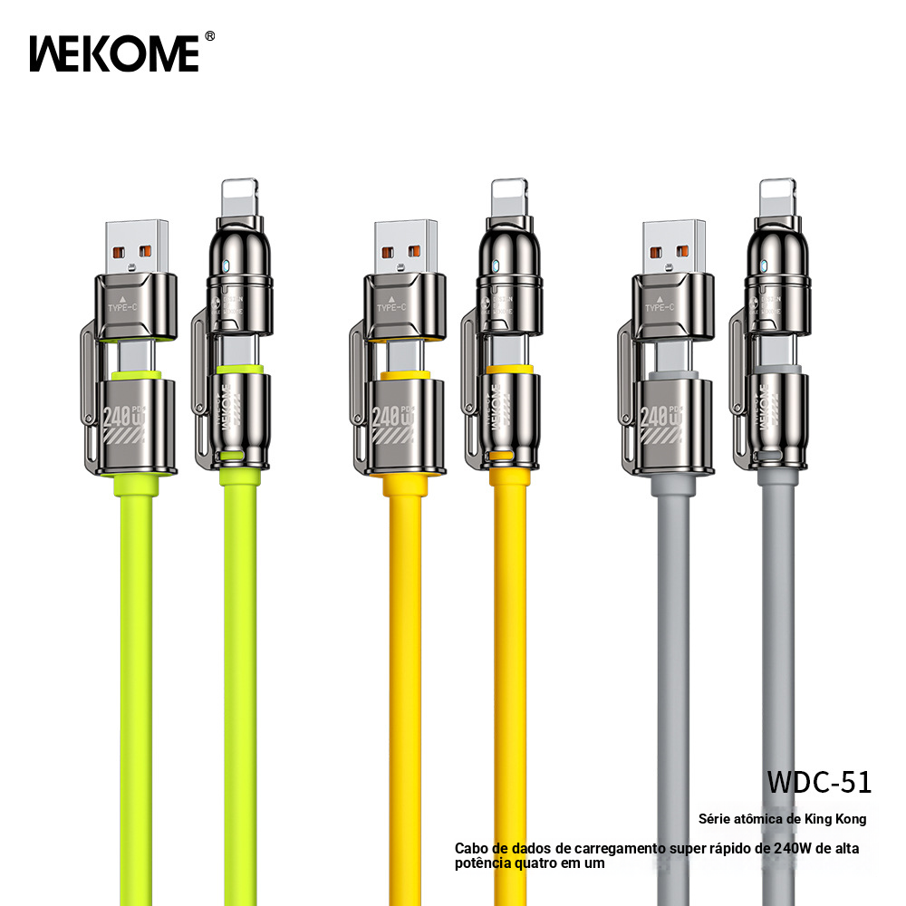 WEKOME KINGKONG Atom 240W Pro-pele verdadeiro silicone de alta potência 4 em 1 super rápido carregamento cabo de dados